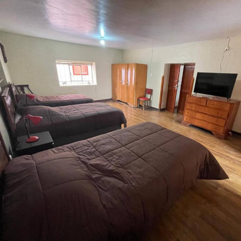 El servicio de cama triple, generalmente implica una habitación equipada para alojar a tres personas. Aunque los detalles específicos pueden variar según el hospedaje, típicamente se incluye lo siguiente: Tres camas: La habitación puede estar configurada con una cama matrimonial y una cama individual o tres camas individuales, dependiendo de la disposición del espacio. Ropa de cama y limpieza: Se proporciona ropa de cama limpia, almohadas y cobertores para cada cama, con un servicio de limpieza diaria o periódica. Servicios adicionales: La habitación podría incluir televisión, Wi-Fi, baño privado o compartido, y artículos de tocador como jabón, champú y toallas. Comodidades extras: Algunas habitaciones también ofrecen acceso a otras instalaciones del hospedaje, como áreas comunes, comedor, o incluso desayuno incluido. Espacio y confort: Las habitaciones triples suelen ser más amplias, con suficiente espacio para que tres personas se sientan cómodas durante su estadía.